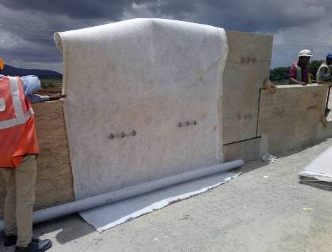 SuperbDrain is supplied in rolls with protective wrapping which is removed prior to rolling out over the prepared surface. Adjacent rolls of SuperbDrain are installed with a slight overlap at roll ends when fixed to walls hard surfaces. SuperbDrain should be covered within 3 to 4 days of installation. SuperbDrain can be used in a variety of vertical and horizontal applications including, behind RE Walls / retaining walls, bridges, cut and cover tunnels and under embankments and green spaces.